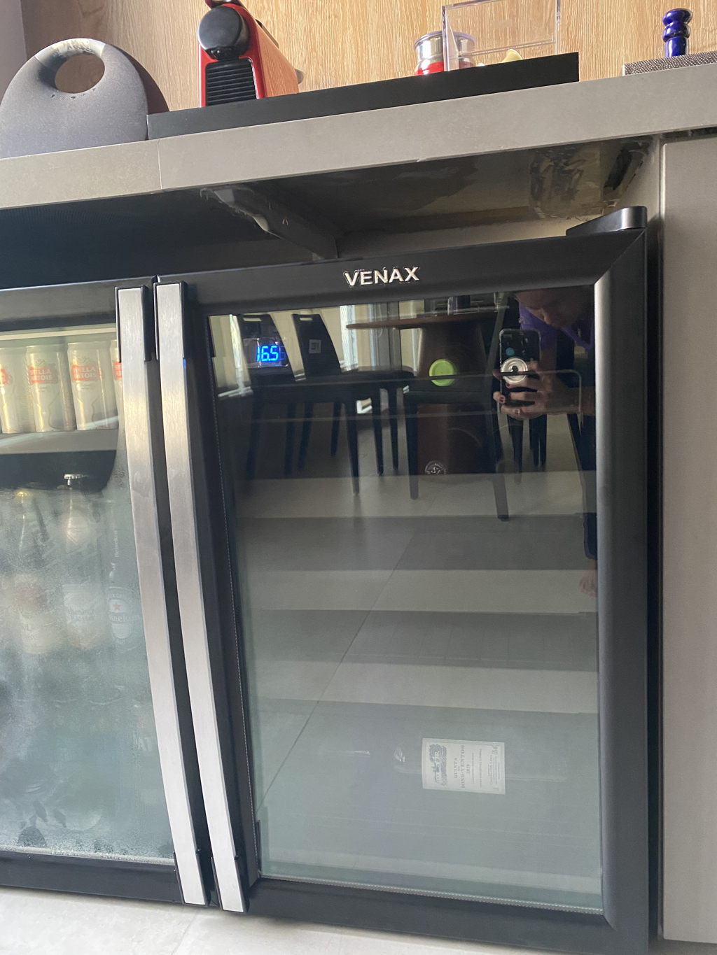 Adega com designer maravilhosa , foi adquirido a adega e cervejeira juntas , essa porta dela invertida ajuda muito quando se coloca uma ao lado da outra , ela e muito silenciosa e temperatura chegou a 13 (jun/21)