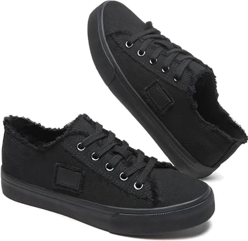 BENPAO Tênis feminino de lona, cano baixo, de lona, cadarço moderno, confortável, branco, tênis feminino, Preto completo, 36