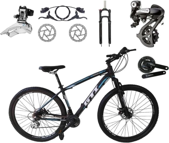 Bicicleta Aro 29 GTI Roma Câmbios Shimano Altus 24v K7 Alumínio Freios Hidráulicos Garfo Com Trava - Preto\Azul