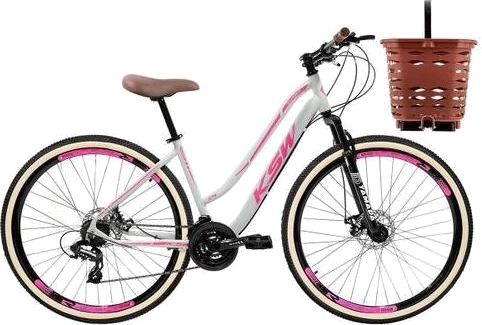 Bicicleta aro 29 KSW Sunny Retro 21V Freio a Disco Cesta, Branco, Rosa