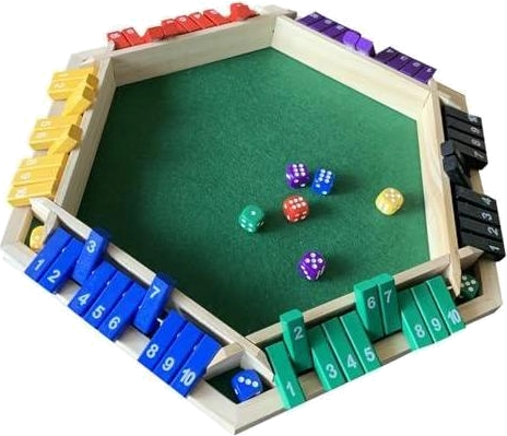 Daconovo 1-6 jogadores fecham o jogo de dados da caixa, jogo de matemática de mesa de tabuleiro de madeira com 6 dados para crianças e adultos, piquenique, casa, festa ou pub