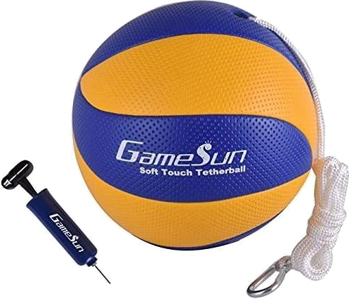 GAMESUN Bola de Tetherball e corda com mosquetão, toque suave, bolas de corda portáteis com corda macia - Ótimo jogo ao ar livre para crianças