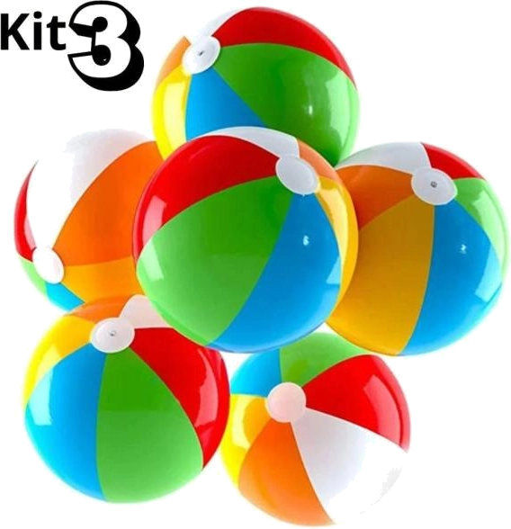Kit 3 Bola Colorida 32cm Vibrante Praia Piscina Infantil Criança