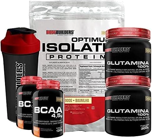 Kit Optimum Isolate Whey Protein 900g + 2x BCAA 100g + 2x Glutamina 300g + Coqueteleira - Bodybuilders