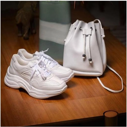 Kit Sneaker Tênis Feminino Chunky Sola Alta Com Bolsa Saco Transversal