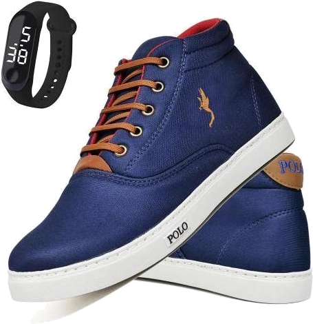 Kit Tênis Casual Masculino + Relógio Digital Polo Blu Dia a Dia, Azul,