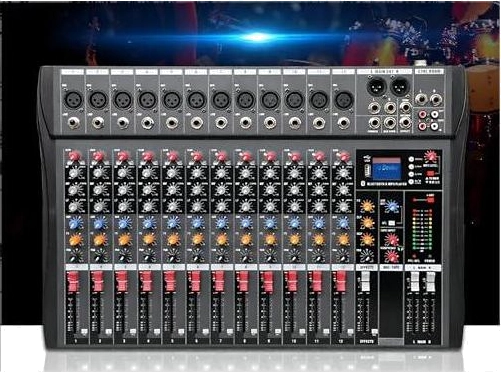 Mesa de som 12 canal, Small Stage Bluetooth USB MP3, entrada 48V Phantom Power DJ Audio Network Karaoke Mobile Live High Power Mixer Professional 12 Channel Studio Audio Mixer 110V/220V 12 canais