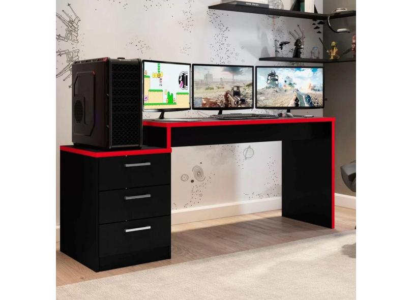 Mesa Gamer Escrivaninha Desk DRX 5000 Móveis Leão Preto/Vermelho