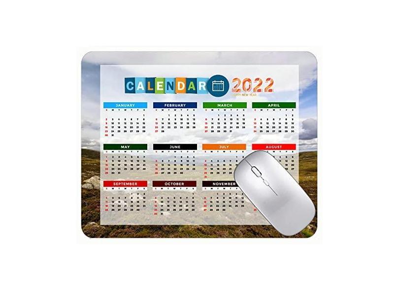Mouse pad 2022 Calendário com feriados, tapete de mouse pad com pedras de grama estepe e nuvens