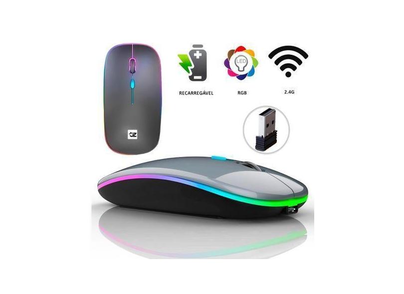 Mouse Sem Fio Recarregável Led Rgb 2.4 Ghz Wirelles E1200 - Lenox
