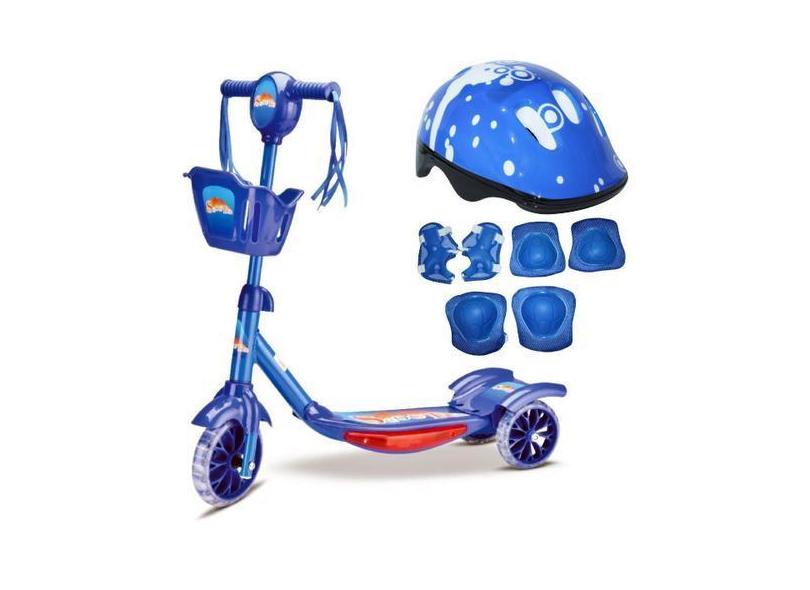 Patinete Infantil 03 Rodas Com Cesta Ul E Kit Proteção - Samba Toys