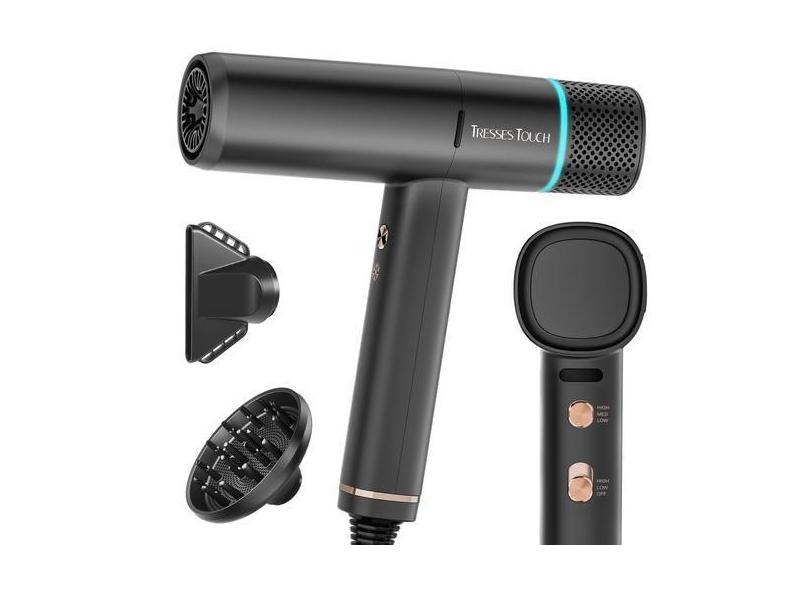 Secador de cabelo Tresses Touch 1600W 150000 RPM com difusor preto