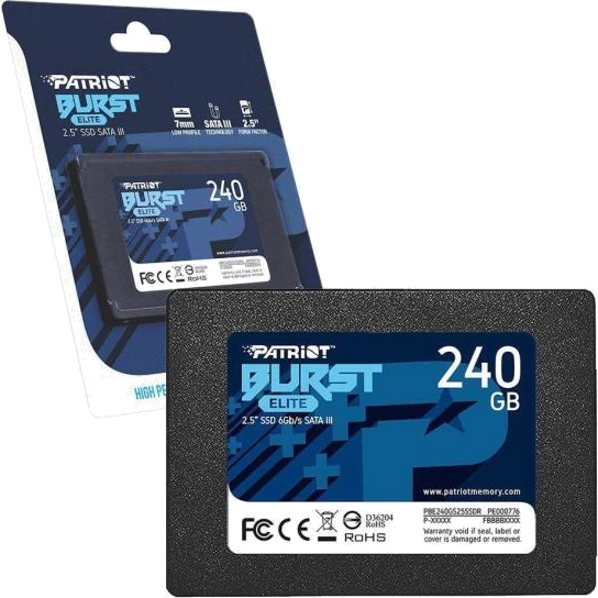SSD 240GB Patriot Burst Elite, Sata III 6Gb/s, Leitura 450MB/s, Gravação 320MB/s - PBE240GS25SSDR