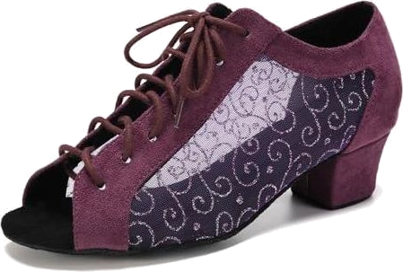 SWDZM Sapatos femininos de dança latina com cadarço salsa tango, tênis para prática de dança, modelo L595, L505-salto roxo 3,8 cm - sola de camurça, 34